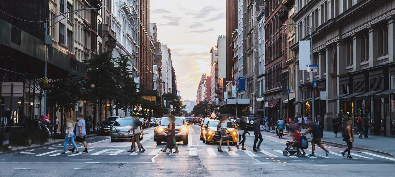 Pedestrians crossing busy city street demonstrating importance of Safe Streets For All grant program