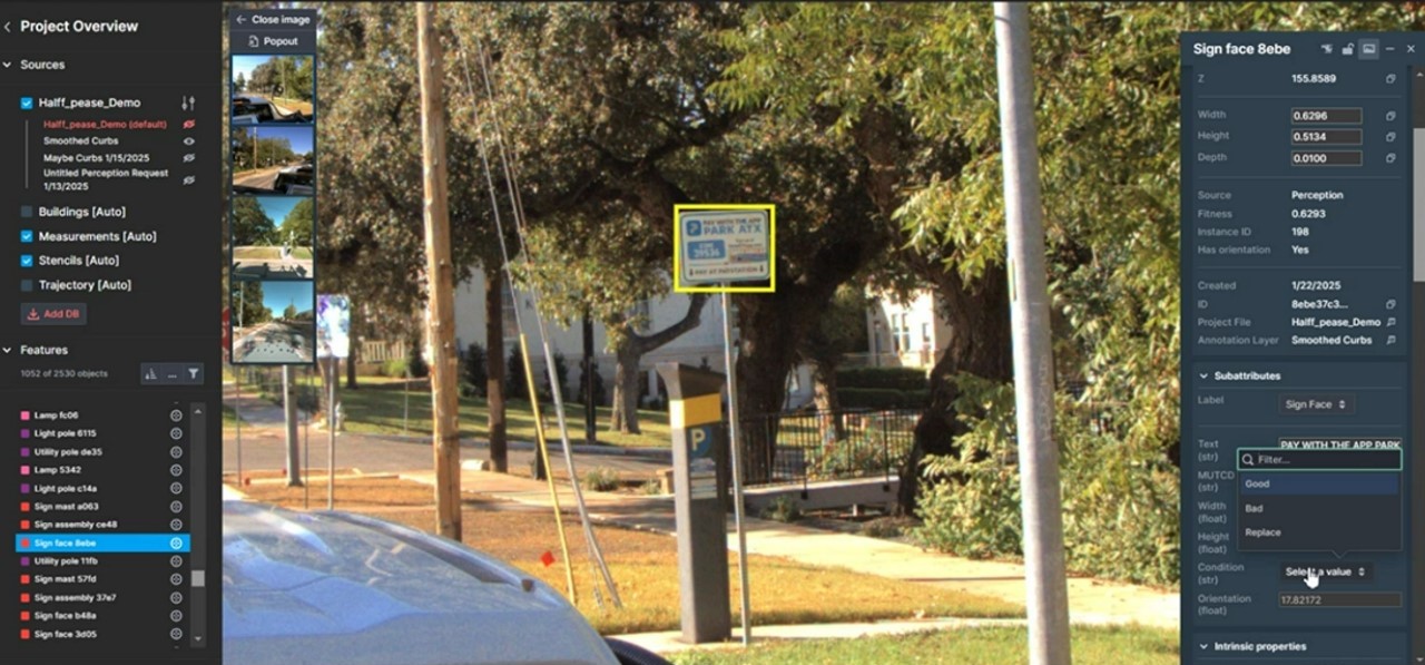 AI is useful for image recognition like this street sign identification, used for GIS database driven asset inventories.